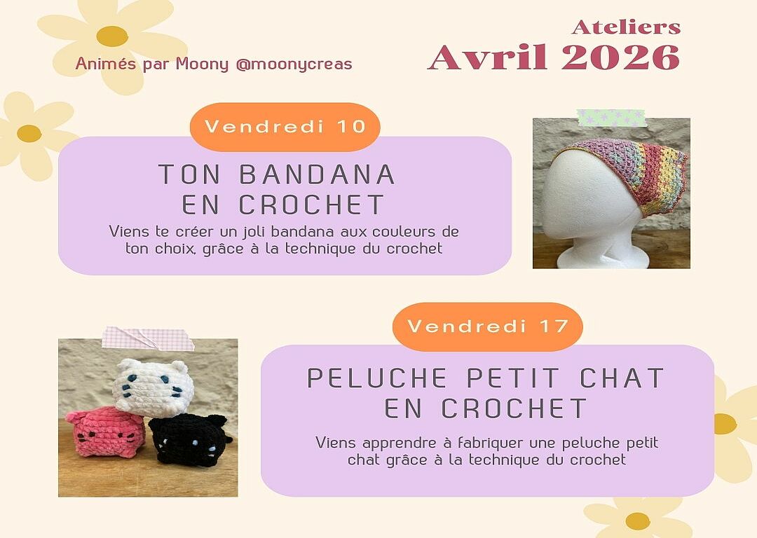 Viens apprendre à fabriquer une petit peluche chat grâce à la technique du crochet, et repars avec ta création